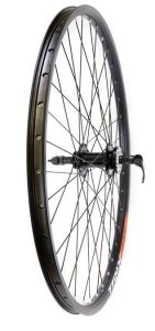 Надежное заднее колесо в сборе диаметром 26 дюймов — отличный вариант для активных поездок и повседневной эксплуатации. Модель собрана на базе прочного двойного алюминиевого обода TRIX и универсальной втулки под трещотку. Сочетание черного матового покрытия и качественной сборки делает это колесо не только долговечным, но и стильным дополнением к вашему велосипеду. Благодаря системе быстросъемного зажима (эксцентрик), установка колеса не требует специальных навыков и инструментов.